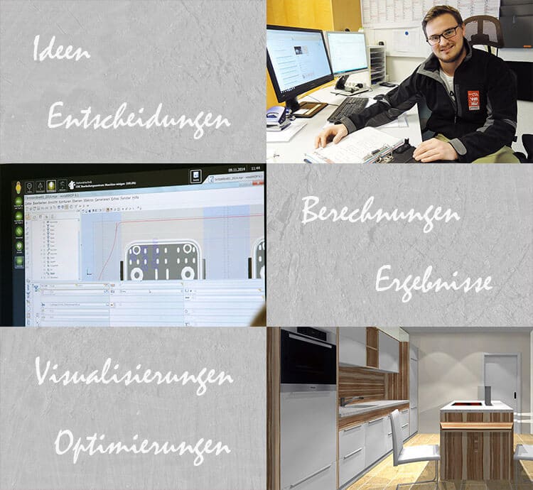 Nachdem alles fertig durchgeplant ist, beginnt die Programmierung für die Steuerung unserer computergestützten Maschinen. So wird die Produktion schließlich soweit optimiert wie es nach neuestem Stand der Technik möglich ist. Dadurch können Möbel und Einrichtungen entstehen, die preislich sowie qualitativ attraktiv sind.