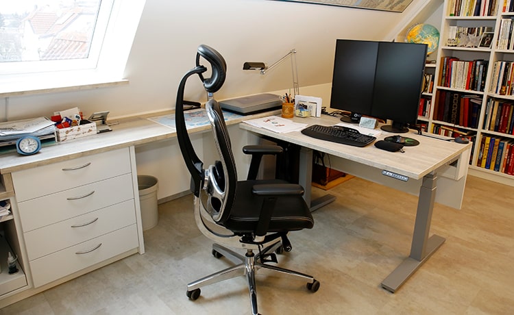 Wer möchte hier nicht im Dachspitz ins Home-Office gehen, umgeben von Büchern und ausgestattet mit einem komplettem Arbeitsplatz mit höhenverstellbarem Schreibtisch incl. Drucker.